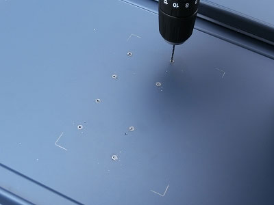 使用工具・機具:メジャー、マーキング材、鉄工用ドリルφ2~3mm及びφ6.5㎜、+3ビット、M6ソケット(10)、電動ドリル、掃除機等